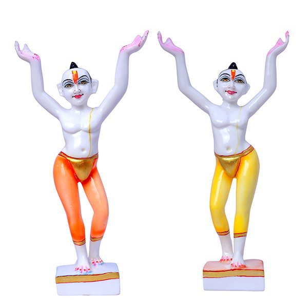 Gaura Nitai Idol Showpiece for Home Decor (Orange & Yellow) Marble – 12 Inch