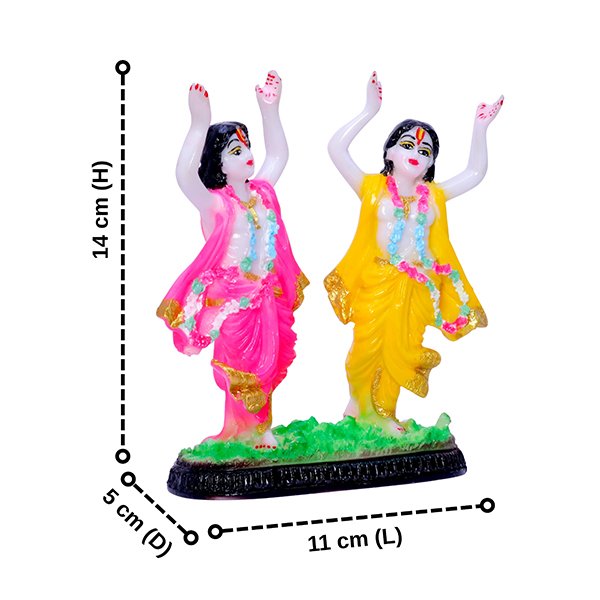Gaura Nitai Idol Showpiece for Home Decor (Pink & Yellow) Marble – 5.5 Inch
