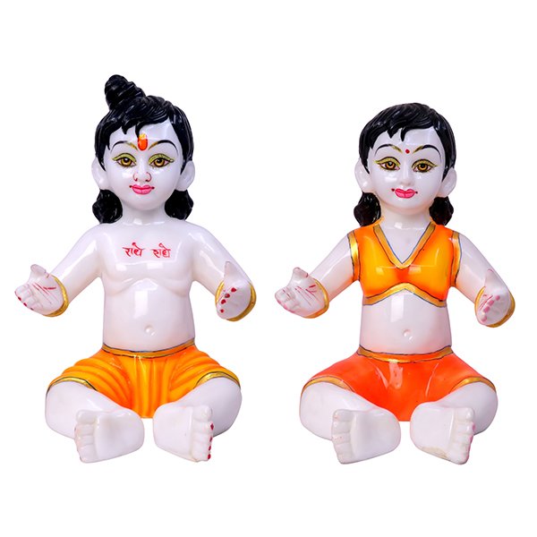- The serene expressions on Radha and Krishna’s faces and the delicate embellishments bring peace and divinity to any space.